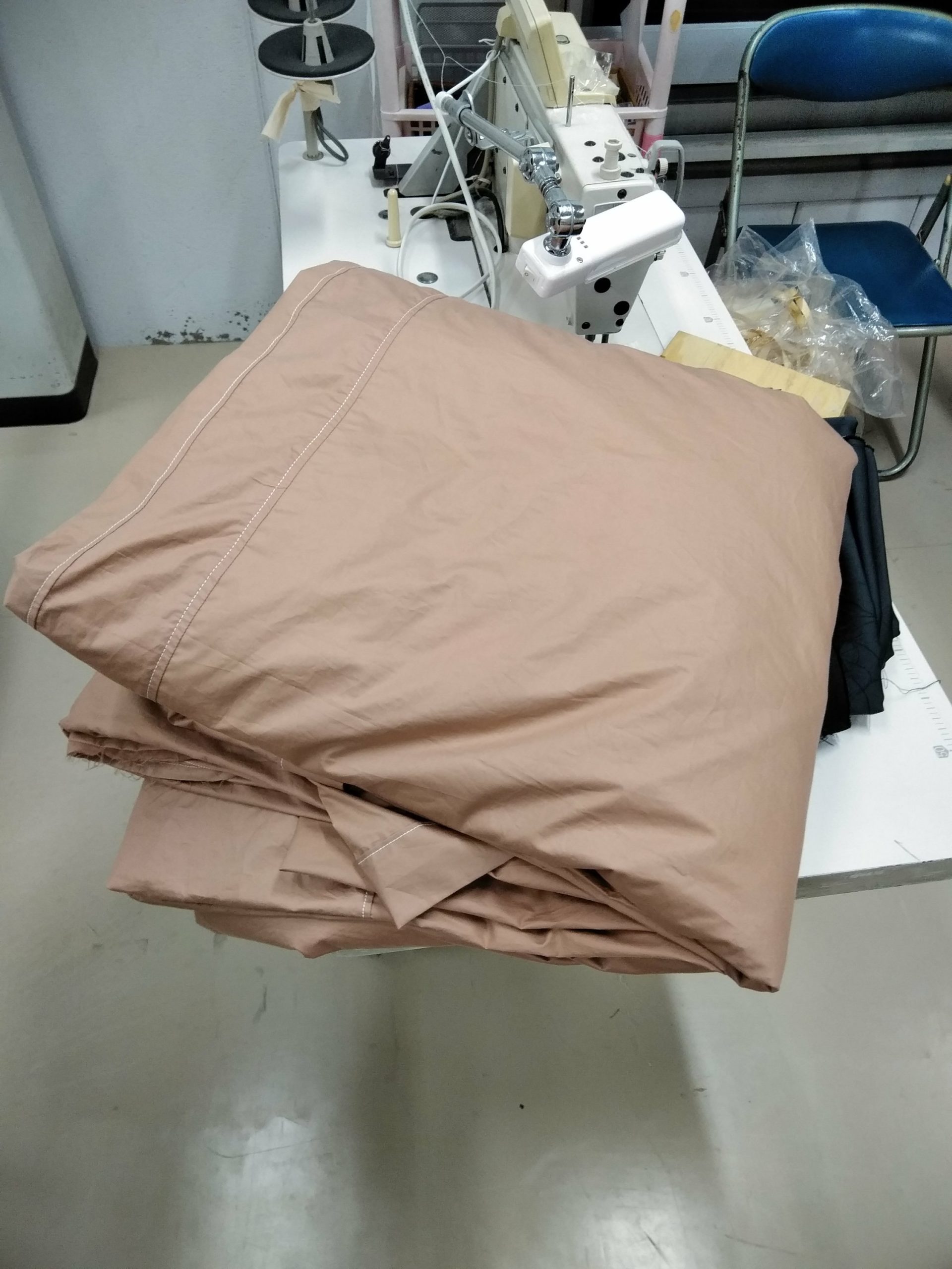 2020年2月10日 / 最終更新日時 : 2020年10月2日 Jumou ようこそJumouへ 巨大テーブルクロス たった1枚の注文なのですが、大物がやって来ました。 オーバーロックをかけるのも2人掛かり。7メートル強のテーブルにかかるクロスとのこと。こちらは上にかかる本番の?生地。固くて重くて大変です。 こちらは下に引くクロス。同じ大きさでフリルの部分が少し短いタイプ。こちらも大変でしたが、生地が柔らかい分、まだマシでした。 関西のホテルで使用されるとか。余裕を持って裁断しているはずが、縫い縮んで寸足らずに。そんなこんなで何日かかったことやら… 明日出荷できないと新幹線でお届けに?今日は何時まで…