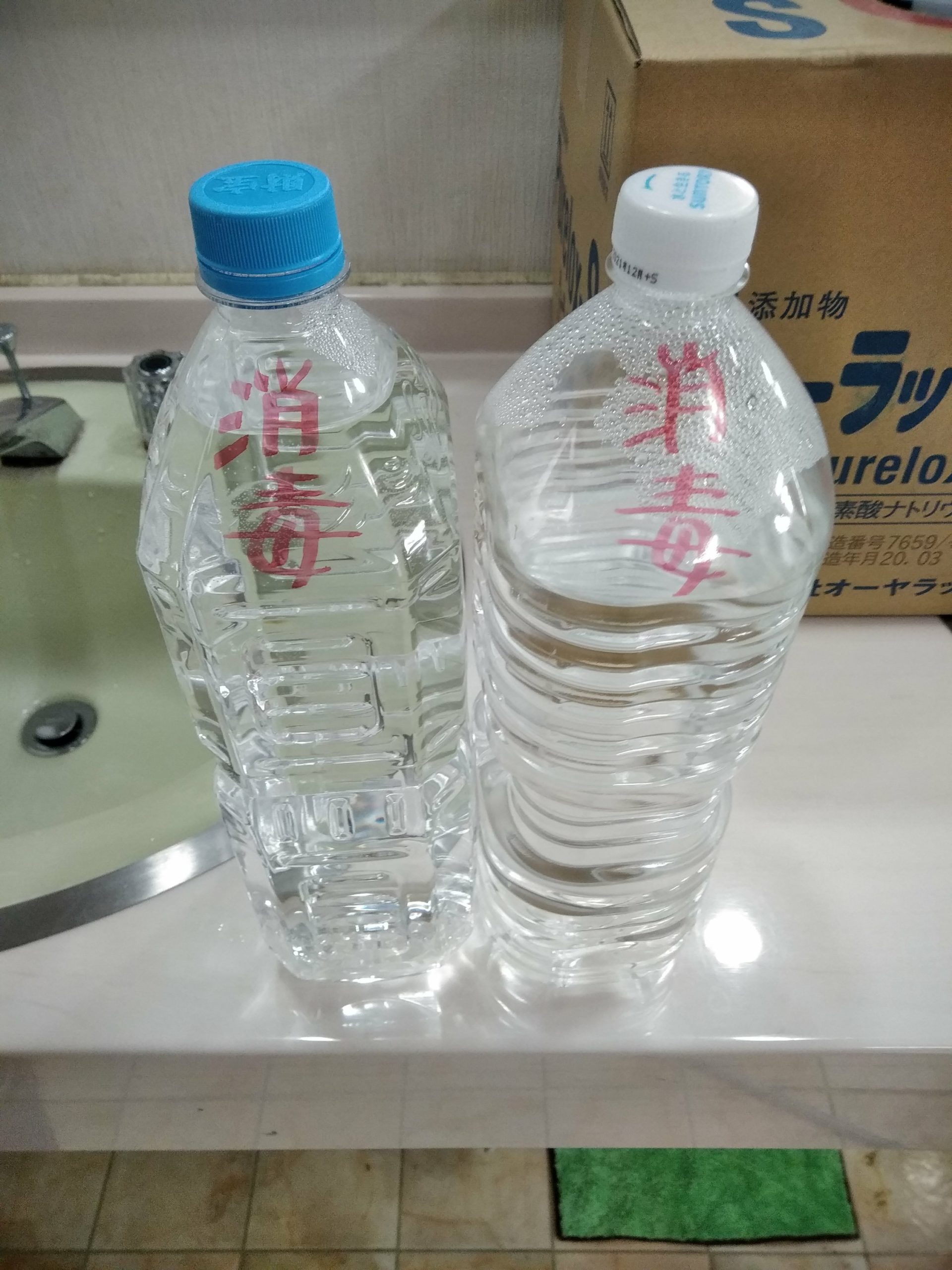 2020年4月15日 / 最終更新日時 : 2020年10月2日 Jumou ようこそJumouへ 消毒準備が整いました ピューラックスが届きました。18㍑。希釈を考えると多すぎた…とも思いますがボトルのは売切れで仕方がありませんでした。 2リットルの水に7ミリリットルくらいのピューラックス。18リットルも… これだけ作ってもピューラックスはたったの17ミリリットル。介護施設とかでも使っているというきちんとした消毒。 この霧吹きが中々手に入らず、やっと5個手に入れました。