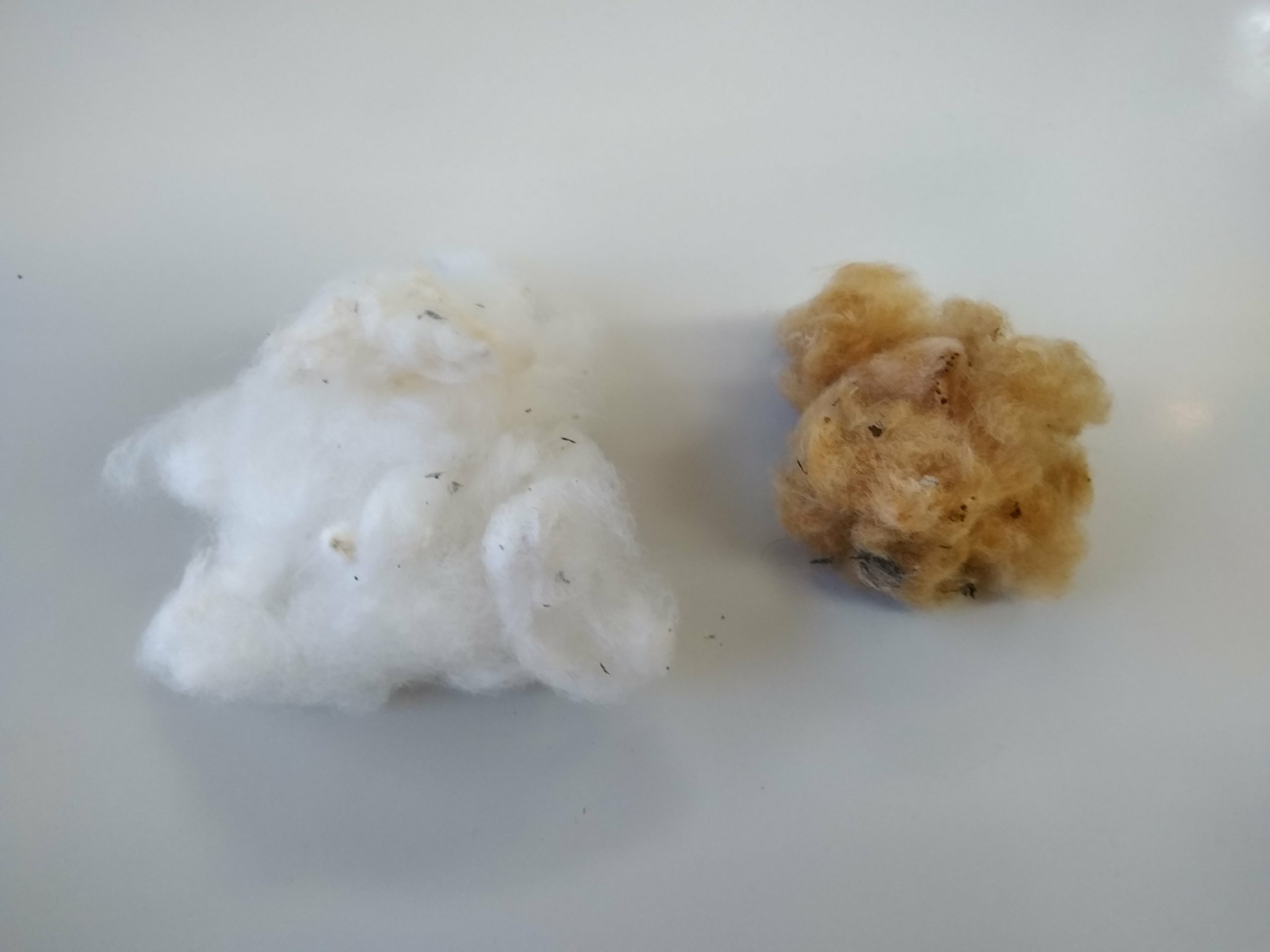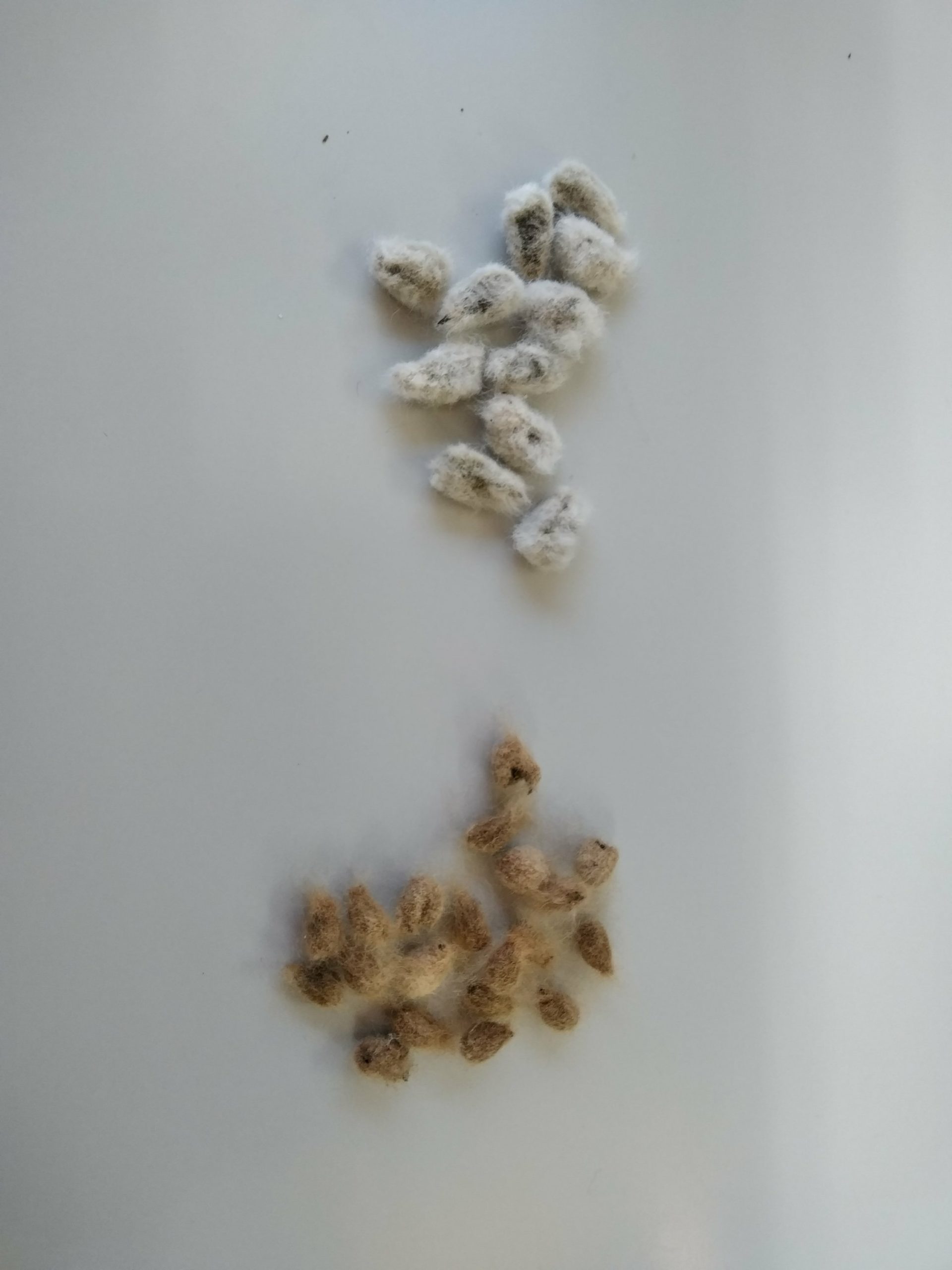 2020年5月8日 / 最終更新日時 : 2020年10月2日 Jumou ようこそJumouへ オーガニックコットンの種 昨年育てたオーガニックコットンの種を今年も植える準備ができました。 昨年イベントでもらった和綿のタネ10粒から2本だけが無事に育ちました。その2本から採った種ですが色が違う綿が取れました。 GWに蒔くつもりでいたのですが、すっかり忘れていました。あんなに暇だったのに… 取れた綿。飾りとしてコットンボールを何個か使っているので、種を取り除いた綿の部分はこれだけ… 大きさがかなり違います。茶色の方はかなり小さい感じ。ちゃんと芽を出すのか心配になります。 昨年は人任せなところがあったので、今年は自分で育ててみようかな、と考えてます。今のところ…