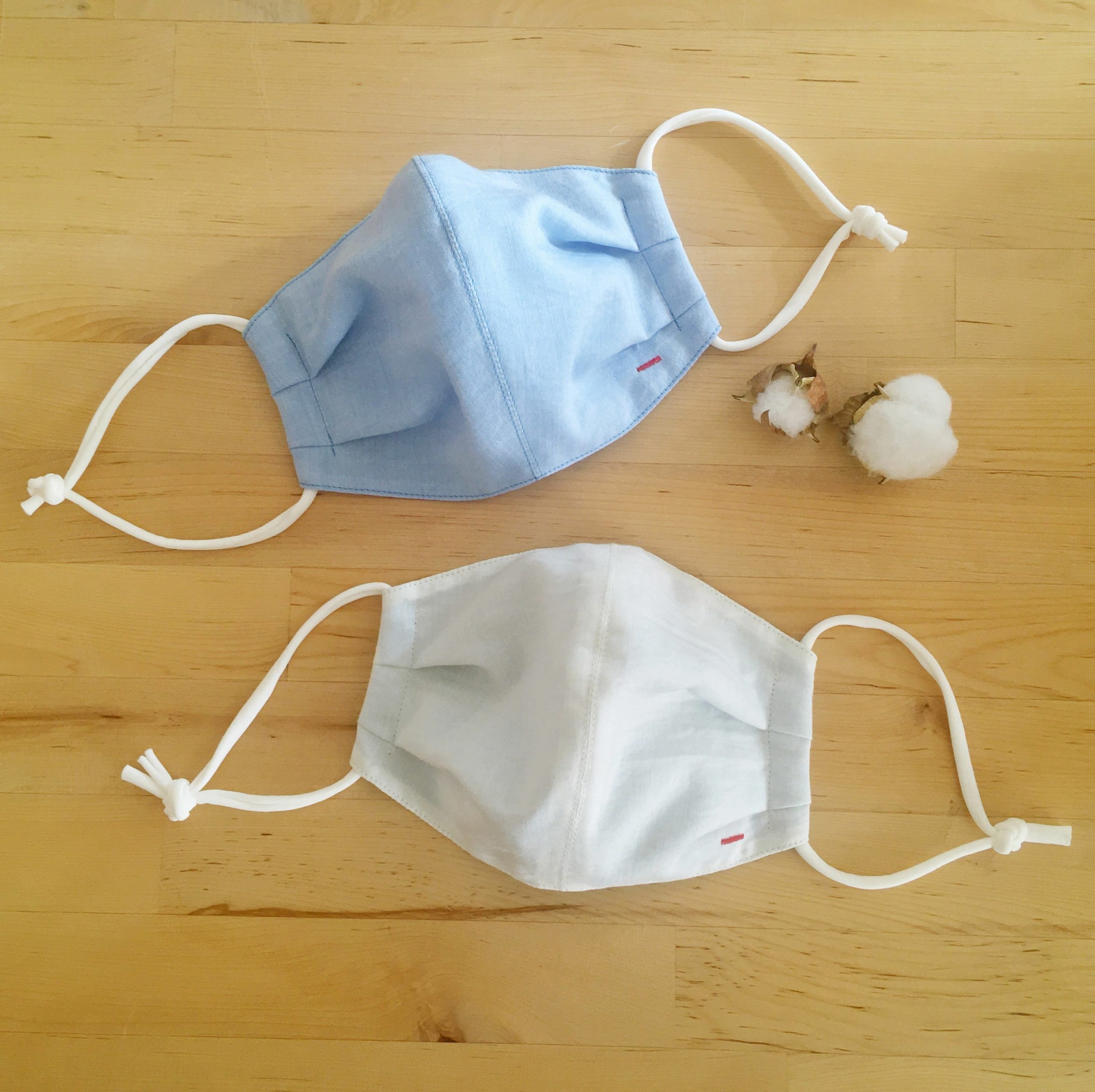 ブルーと白。涼やかな色を選択しました。白の裏はブルー。リクエストによって裏白もお作りします。会社などで白指定が厳しい方などはすでにリクエストをいただいています。