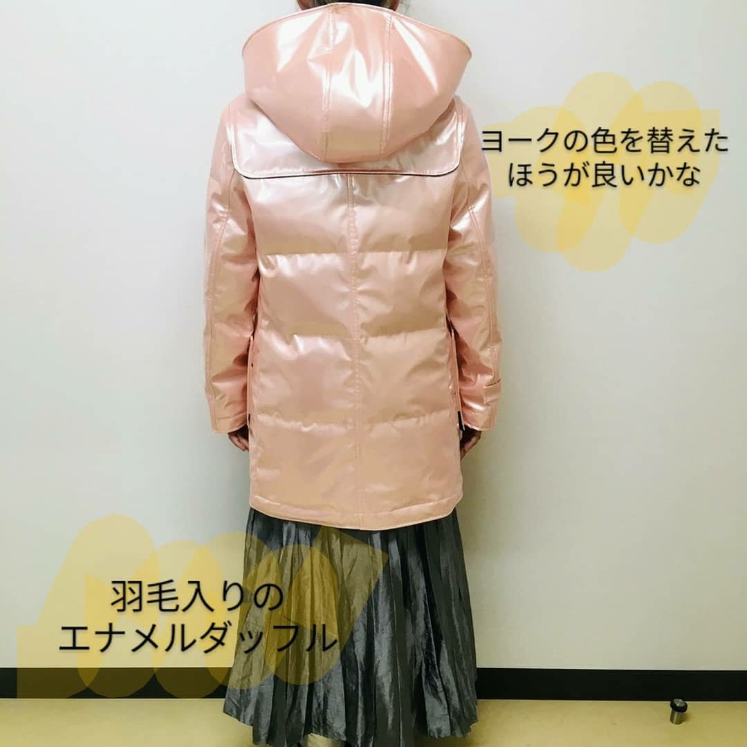 2020年7月28日 / 最終更新日時 : 2022年9月1日 Jumou スタッフブログ OEMで作ったエナメルコート XLなので少し着てくれた人には大きすぎますが、中々良い感じに仕上がっています。 ダウンのダッフルコートです。オーダーメイドです。あるお客様がオーダーを取ってそれを作るという仕組みで動いています。 ちょっとフードが大きすぎる? パタンナーが都度修正をしなければならず、採算が合うのか微妙になってきました… 取り敢えず面白いので始めましたが、いつまで続くか… ピンクのエナメルとか色々と作っています。 フードが大きい… エナメルがかたいから…