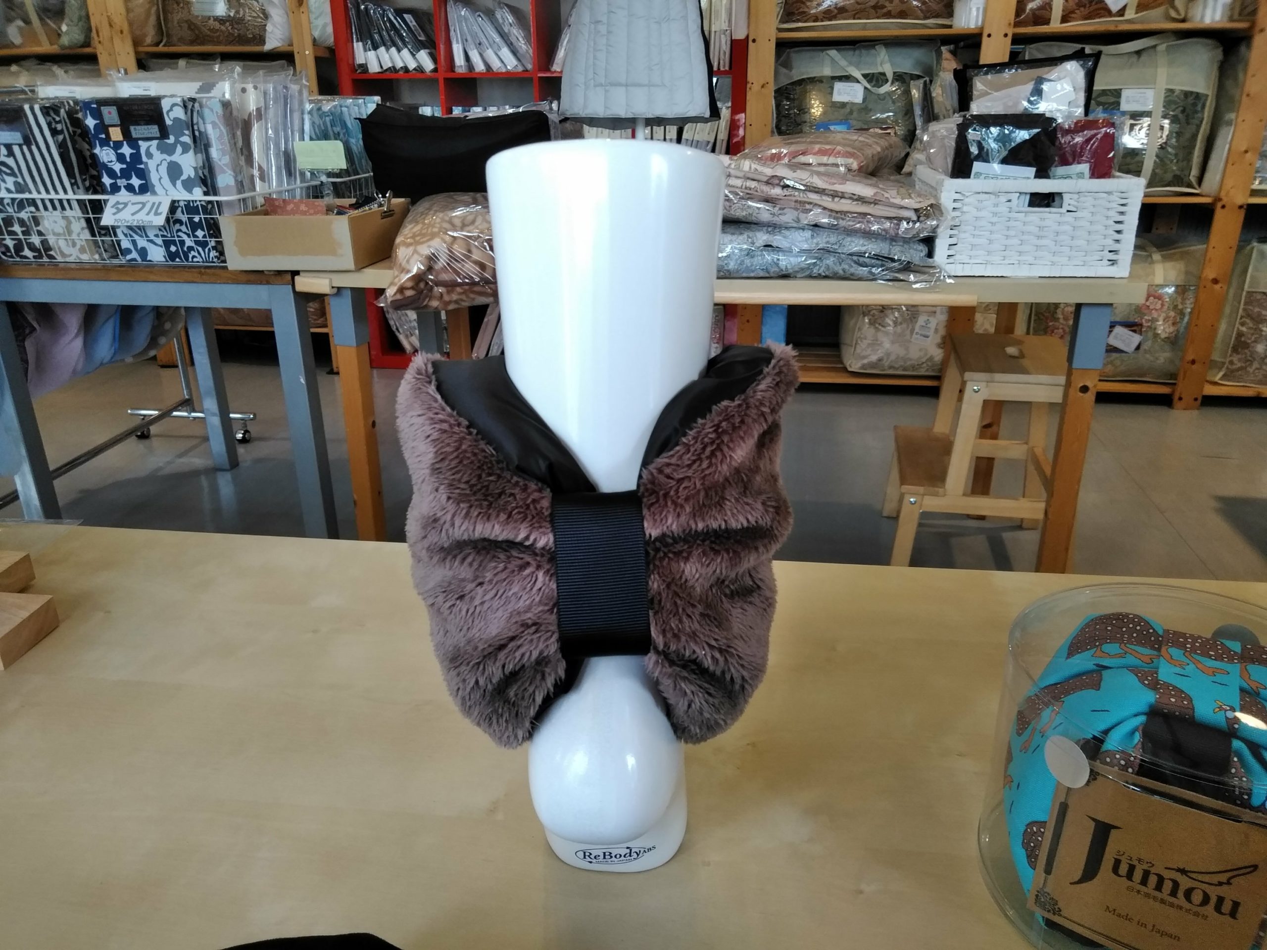現在裏生地とリボンを改良中。本格発売は10月になります。暖かくてカワイイ 20年秋冬イチオシのアイテムです。