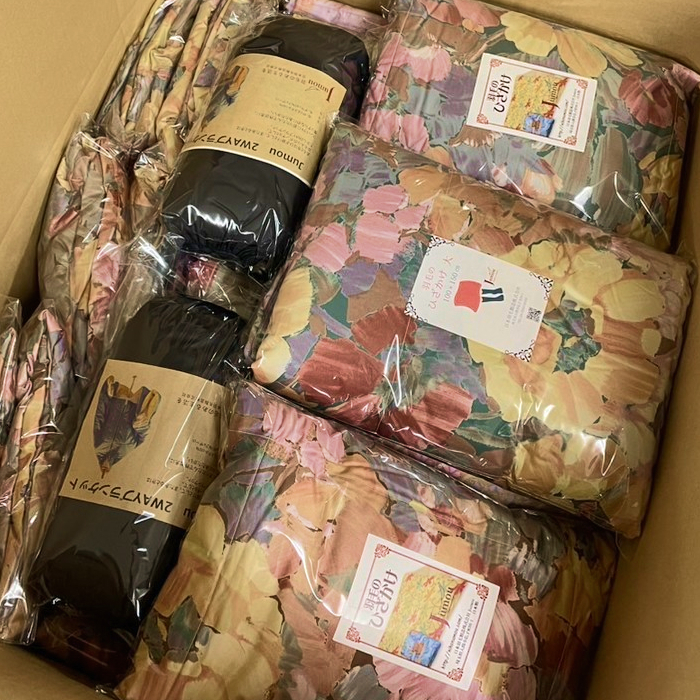 ご寄付を申し出てくださっている方にその旨お伝えすると、その方は喜んでその時の当店の在庫、すぐに送れるありったけの羽毛のひざ掛け30枚をお買い上げくださいました。