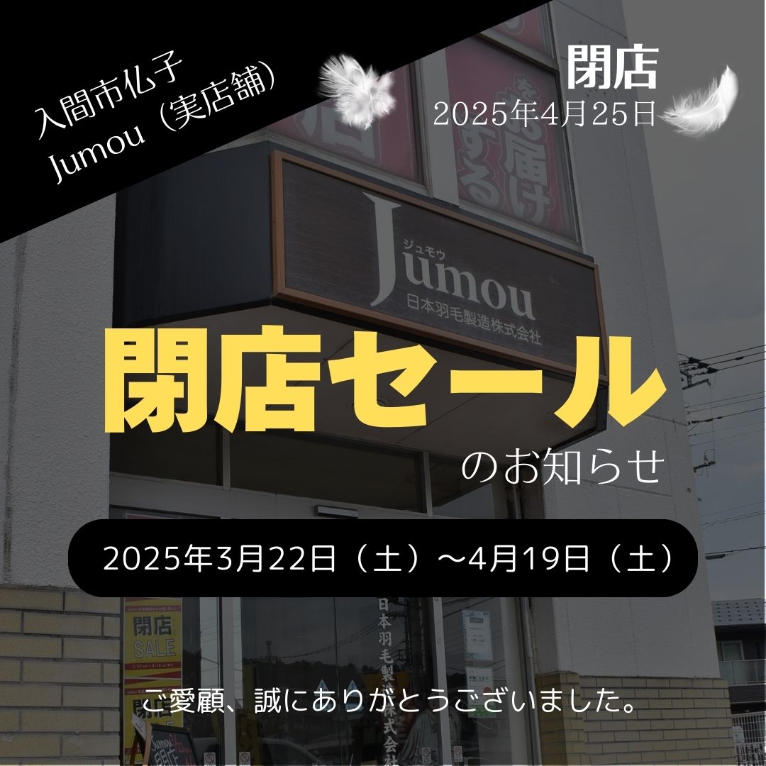 このたび誠に勝手ながら、入間市仏子の本社工場併設の直販店「Jumou 本店」を閉店することとなりました。
