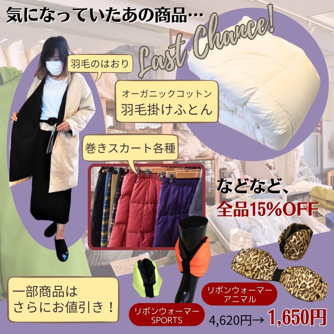 どうぞご都合がゆるす限りご来店いただき、高品質な羽毛製品をお得な価格でお求めくださいませ。