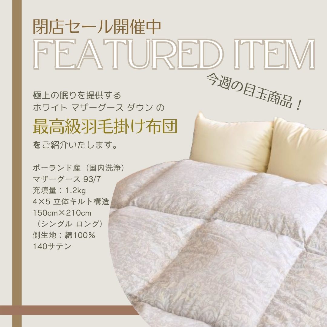 閉店セール/今週注目の商品は「マザーグース羽毛掛け布団」