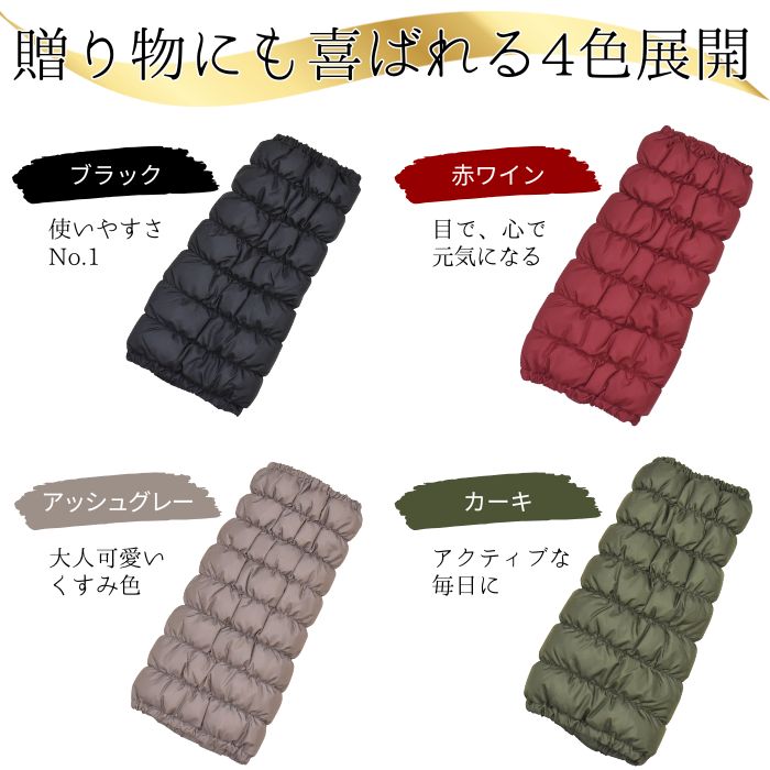 「美脚ダウンレッグウォーマー」の名称で人気販売中の羽毛のレッグウォーマー、